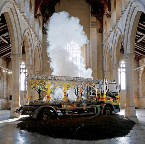 ‘Future Returns’ features a massive vehicle which sits on top of nine tons of earth to create what Rawlings says is “an imagined, distant-future ‘truck in the wilderness’ landscape, creating a vision of a world where man’s impact is being slowly reclaimed by nature”.